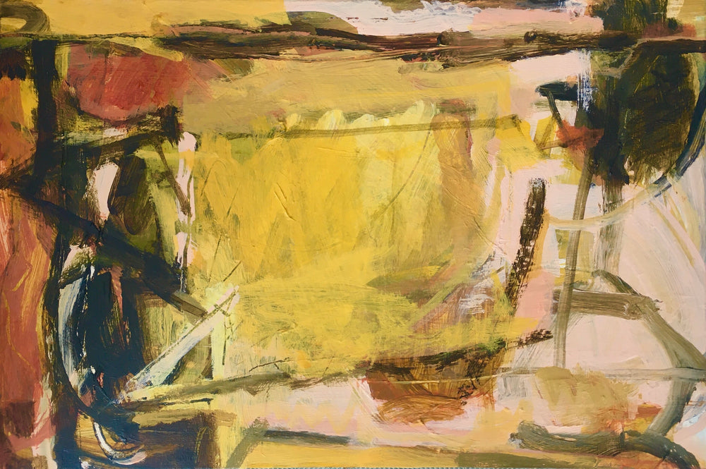 Janet Keith, Yellow Phase (Spring), painting, 38 x 26 cm (50 x 38 x 3 cm framed)