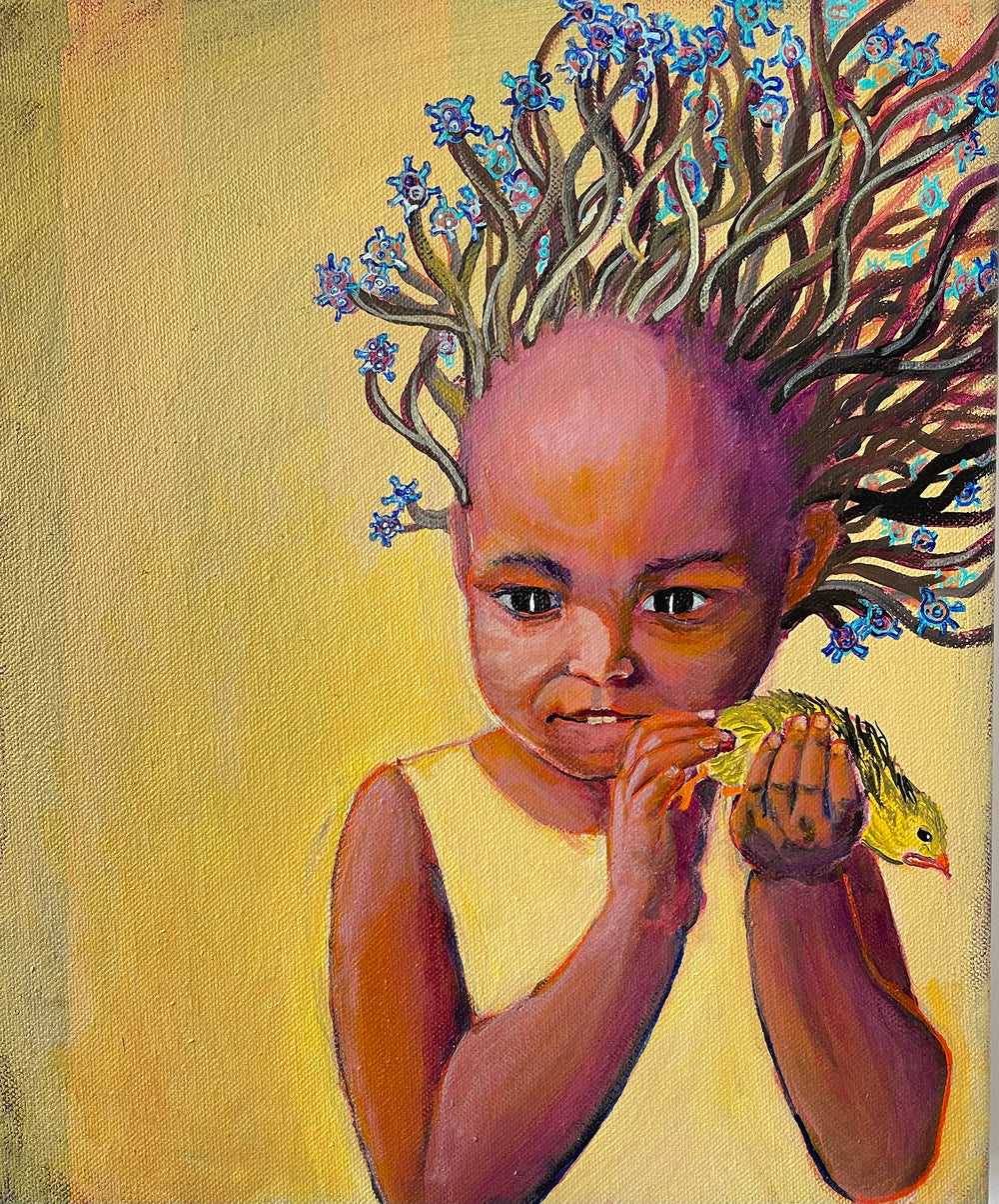 Ashley B Holmes, Herald of a Covid Summer, painting, 25 x 30 x 4 cm