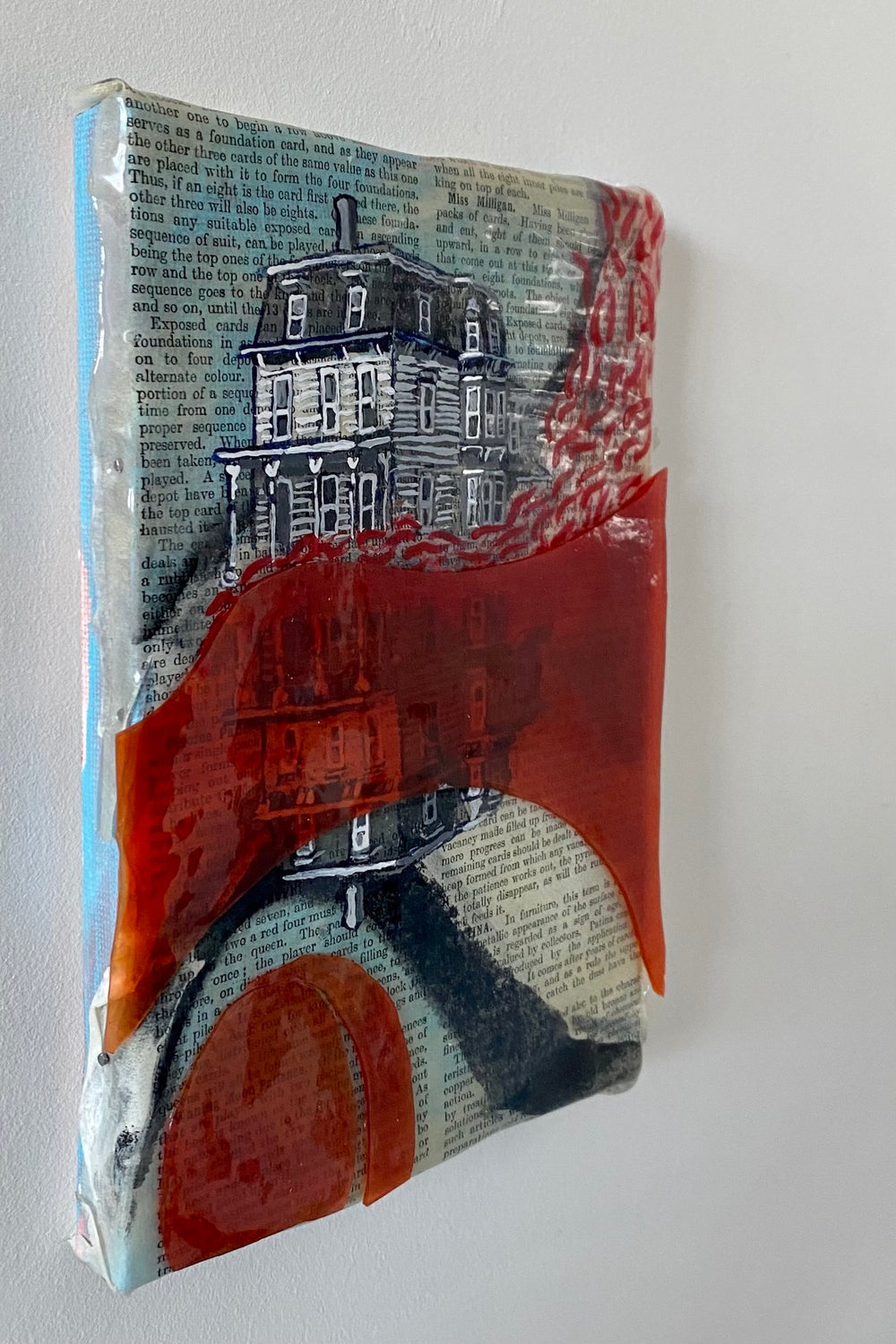 Ashley B. Holmes has extensively exhibited locally and internationally. Her works have been bought for private and public collections or commissioned for public spaces. The artist creates paintings that explore states of mind and psychological landscapes. She often uses the iconography of house, a space that can contain all the emotional grey areas between a safe place and a secret war zone, a dual nature which can be subtly be referred to by mirrored images. Despite being inspired by historical architecture, these fascinating houses have a surreal and dreamy quality as they swim, fly or float in imaginary spaces.