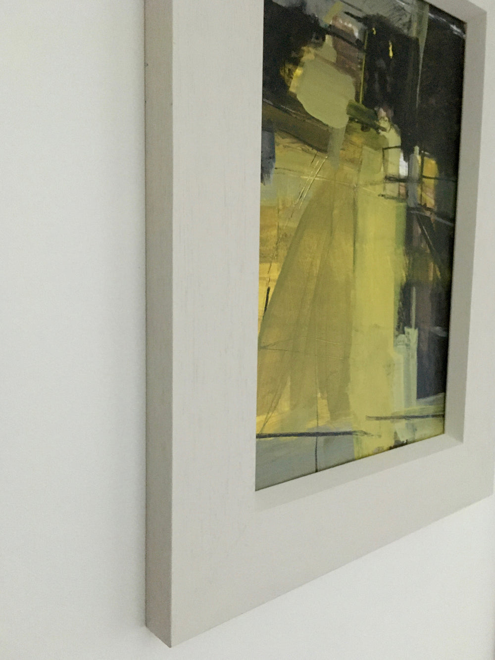 Painting is framed in broad (6.5 cm) flat profile hand painted, simple, off white frame