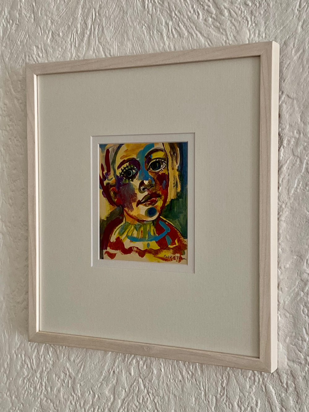 Rosie McGurran, Lockdown Clown, painting, 13.5 x 15.5 cm (35 x 38.5 x 2.5 framed)