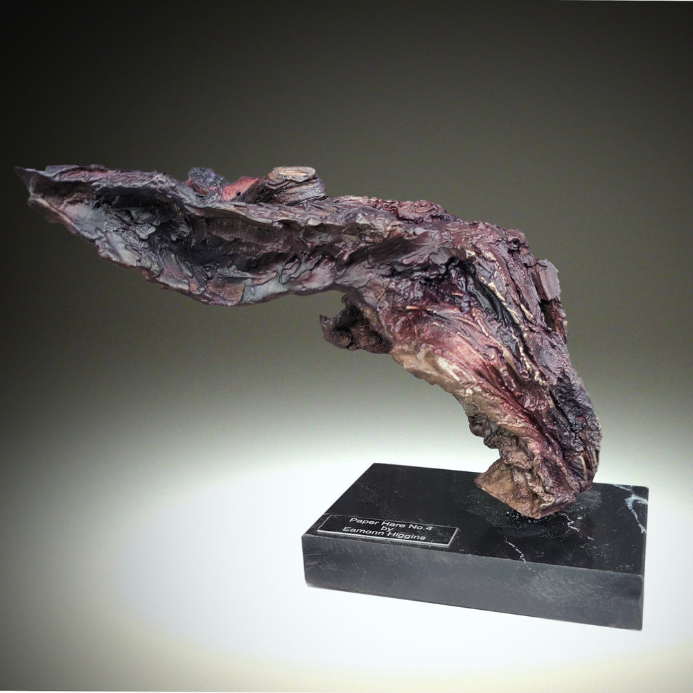 Eamonn Higgins, Paper Hare #4, bronze sculpture, 17 x 15.5 x 23 cm