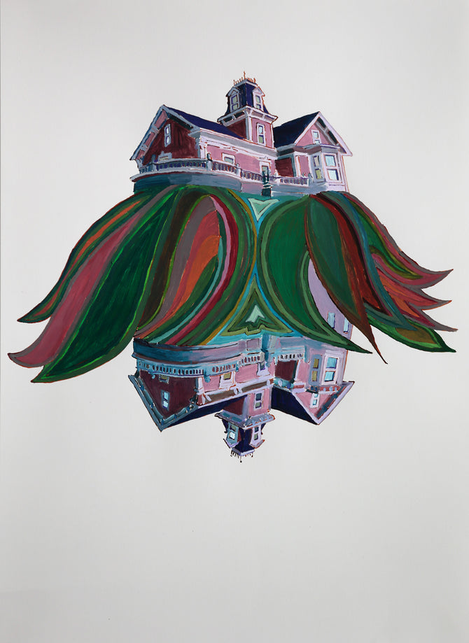 Holmes creates paintings which explore and reflect psychological landscapes with a dual nature. The visual motives of the house or natural scenery recur in her works, creating spaces with opposite qualities and atmospheres, from pleasant and serene to disturbing and unnerving, often conveyed at the same time, and thus inviting or disquieting the viewer, or both. Her houses can be welcoming and or dangerous places, an expression of the idea that a home can contain all the...