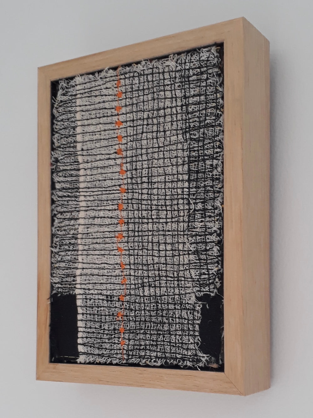 Patricia Kelly, Winter Note 4, textile art, 10.5 x 15.5 cm (12.5 x 17 x 3 cm framed)