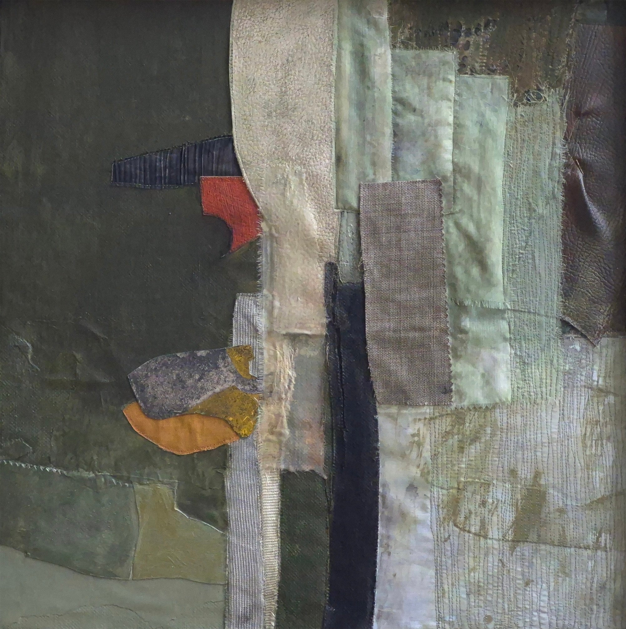 Medium(s): textiles and acrylic on canvas mounted on ply wood panel