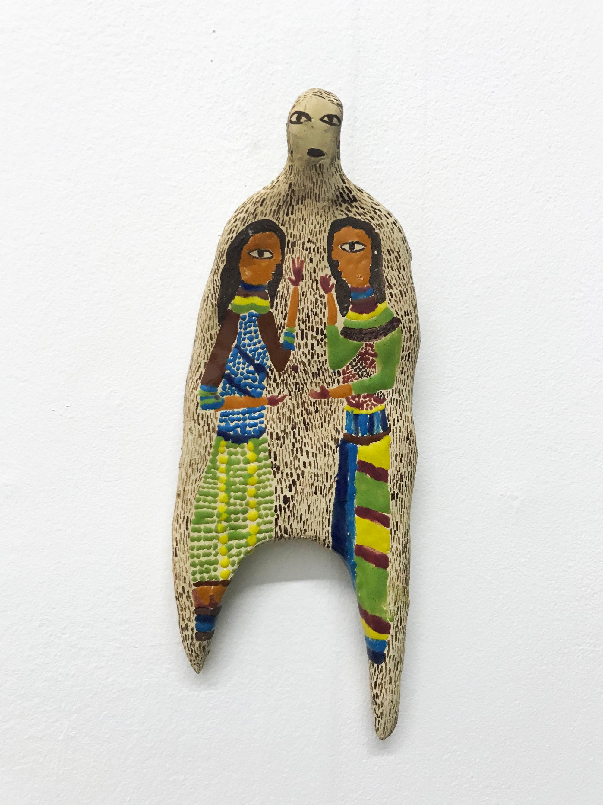 In a series of ceramic sculptures called ‘Docile Bodies’, Hemmat takes a stance against discrimination based on stereo-types as she highlights the uniqueness of each human being. She explains that ‘since the body represents the human, a symbol of an individual and the boundaries that separate him/her from other individuals, this project emphasises the diversity of the sculptures as having different shapes, colours, patterns, words and textures. These works have been based on studies on creation, mythology, gestation, images and sculptures from the Palaeolithic and Neolithic era, and primitive tribal art.'