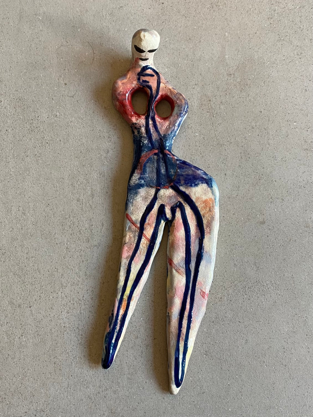 In a series of ceramic sculptures called ‘Docile Bodies’, Hemmat takes a stance against discrimination based on stereo-types as she highlights the uniqueness of each human being. She explains that ‘since the body represents the human, a symbol of an individual and the boundaries that separate him/her from other individuals, this project emphasises the diversity of the sculptures as having different shapes, colours, patterns, words and textures. These works have been based on studies on creation, mythology, gestation, images and sculptures from the Palaeolithic and Neolithic era, and primitive tribal art.'