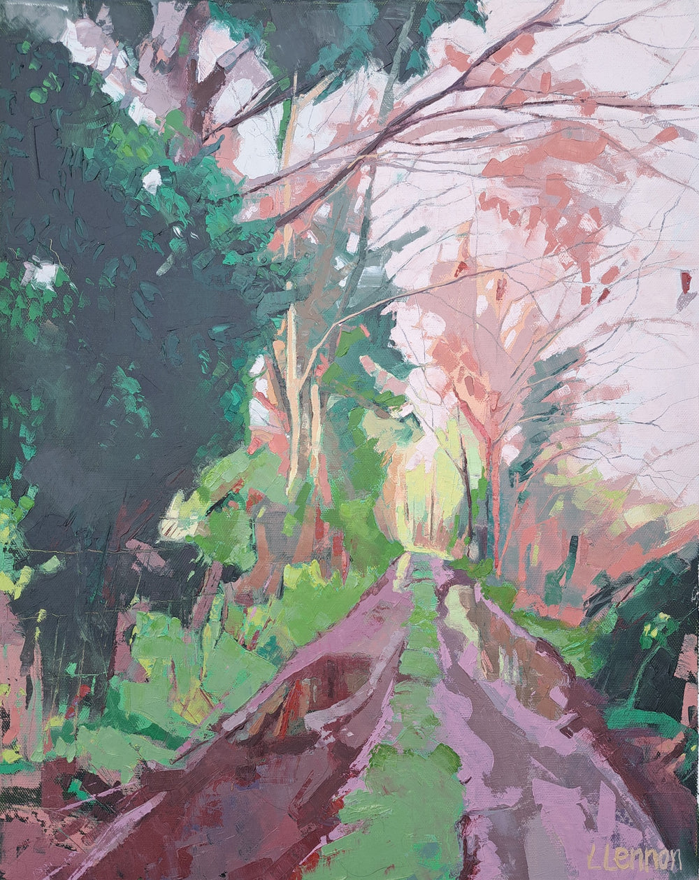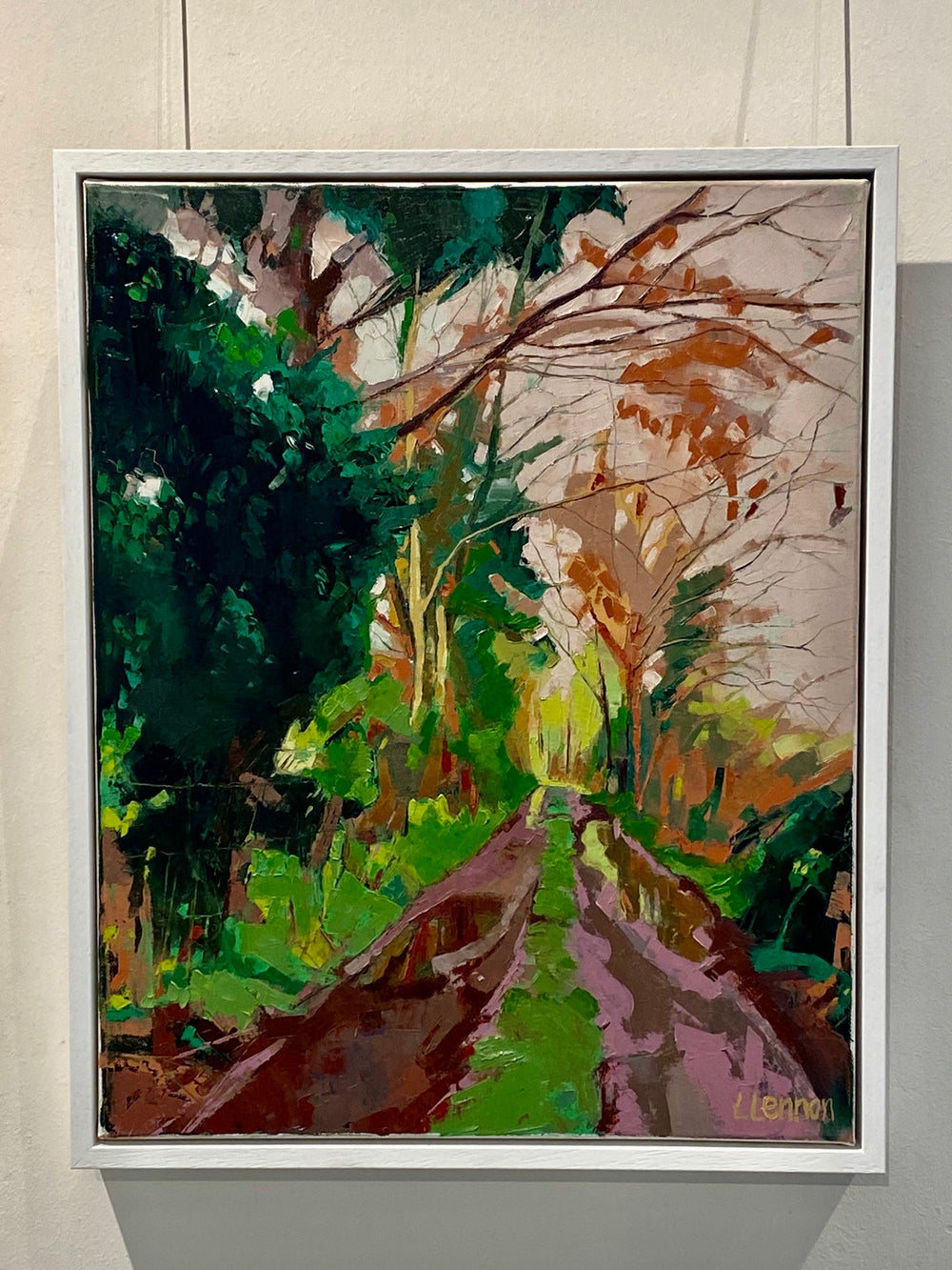 Louise Lennon is an award-winning contemporary landscape artist. She works in oil, and she also draws on her textile background to create mixed media art using batik and oil techniques. Her art is inspired by the local rural landscape and features impressionistic close and distant views of the countryside.