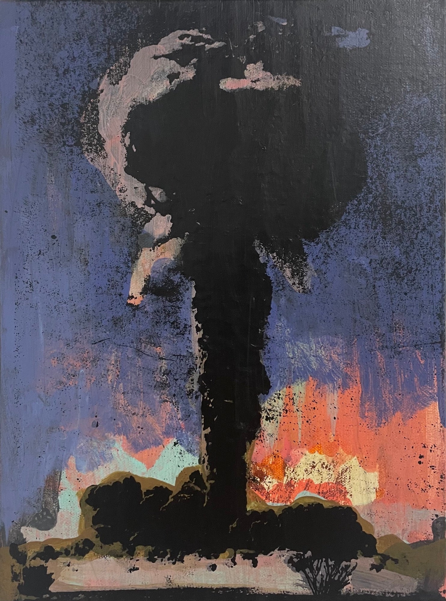 Karl Hagan has added this and other pieces to a strong body of work inspired by images of bomb tests, observations on the destructive power of explosions, and reflections upon past and present threats to our society.