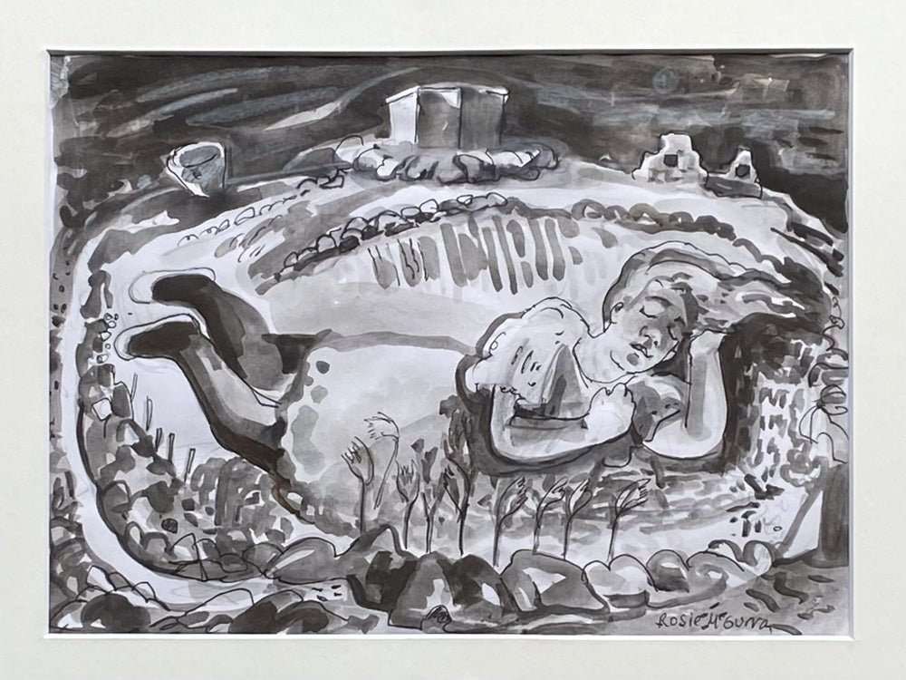 Rosie McGurran is a member of the Royal Ulster Academy and an award-winning painter. Her work draws upon stories and histories of Roundstone (in the West of Ireland) and Belfast, as well as autobiographical elements. Yet, her paintings are never completely true representations of events, people, places or memories, but the real world co-exists and blends with an imagined one