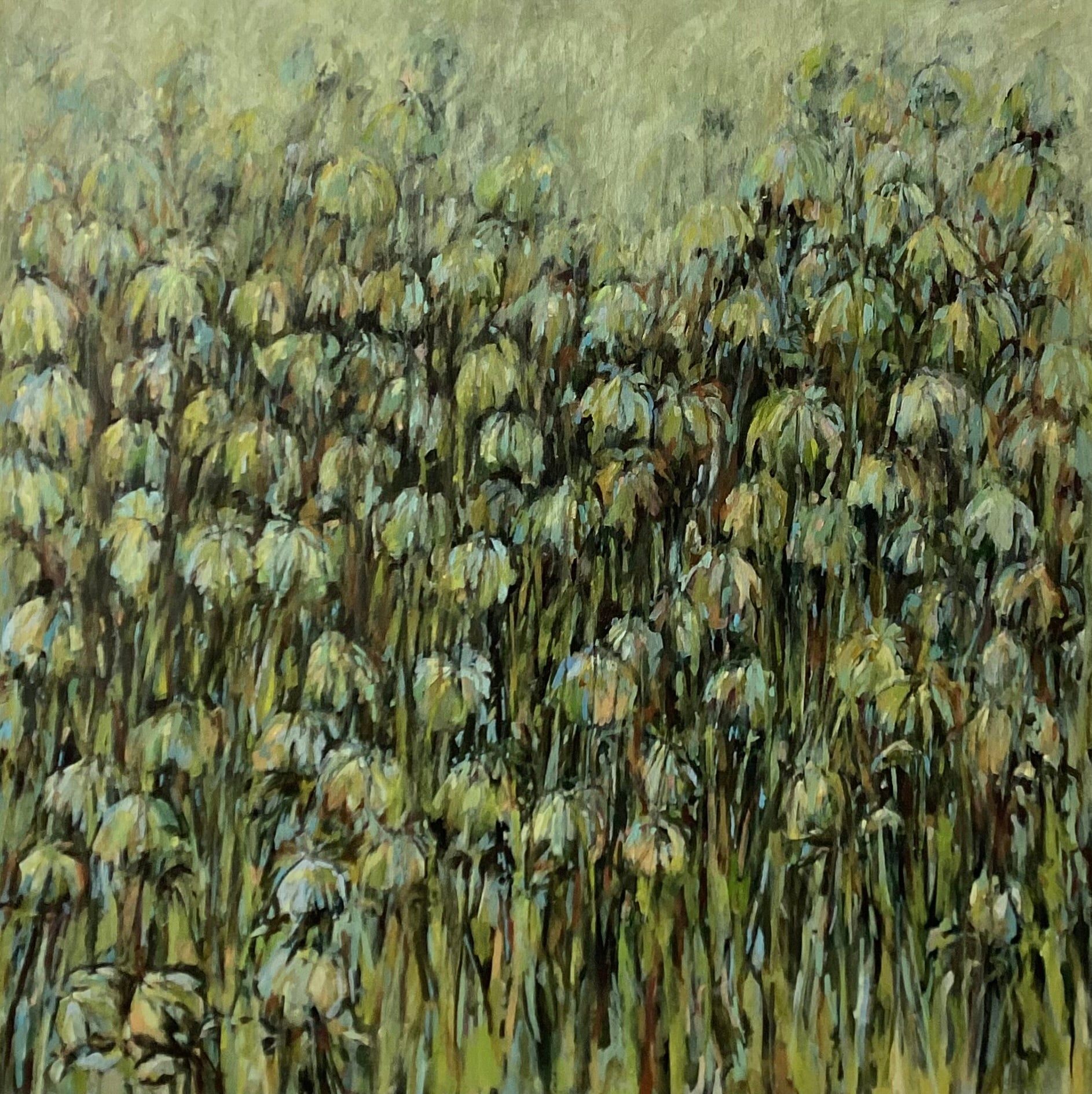Anushiya Sundaralingam, Flax I, painting, 95 x 95 x 2.5 cm