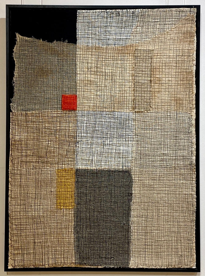 Kelly creates abstract textile pieces using free motion embroidery techniques and old fabrics. Her inspiration and influence come from many sources including the landscape and skies in the west of Ireland, and the sense of belonging to a place, where family history is interwoven through present lives. Her work aims to convey the multi-layered nature of lives, linked and stitched together.