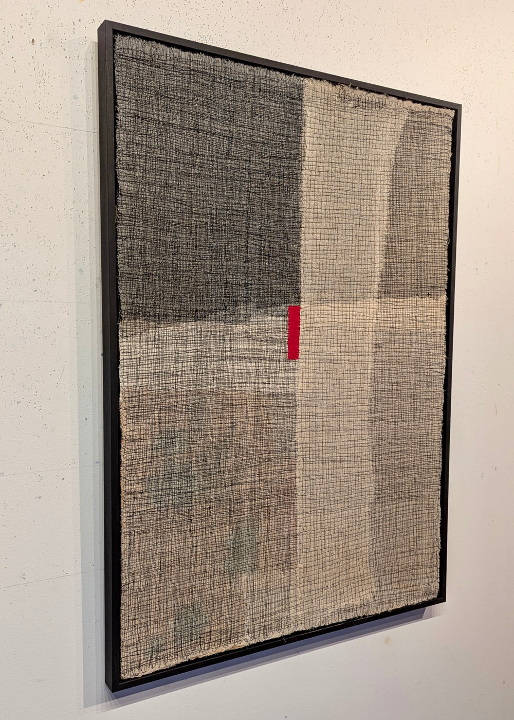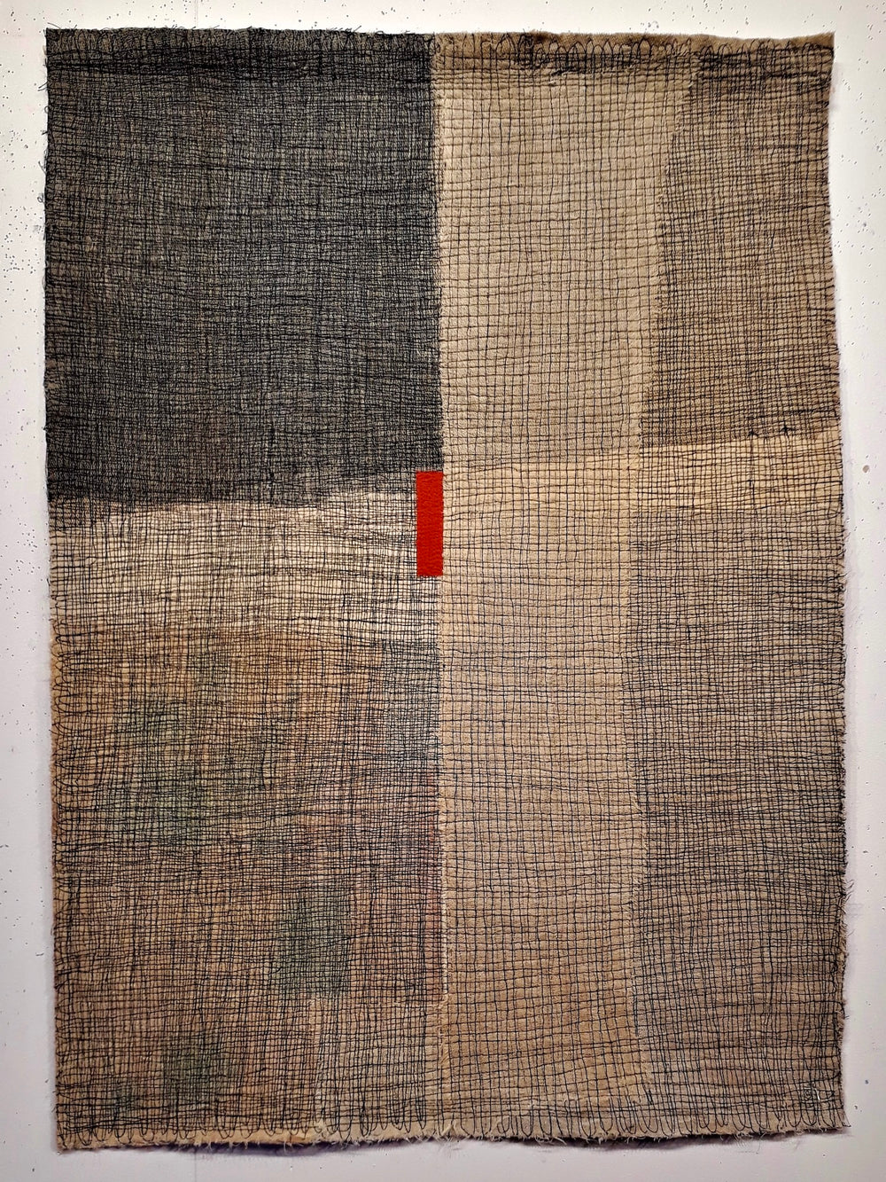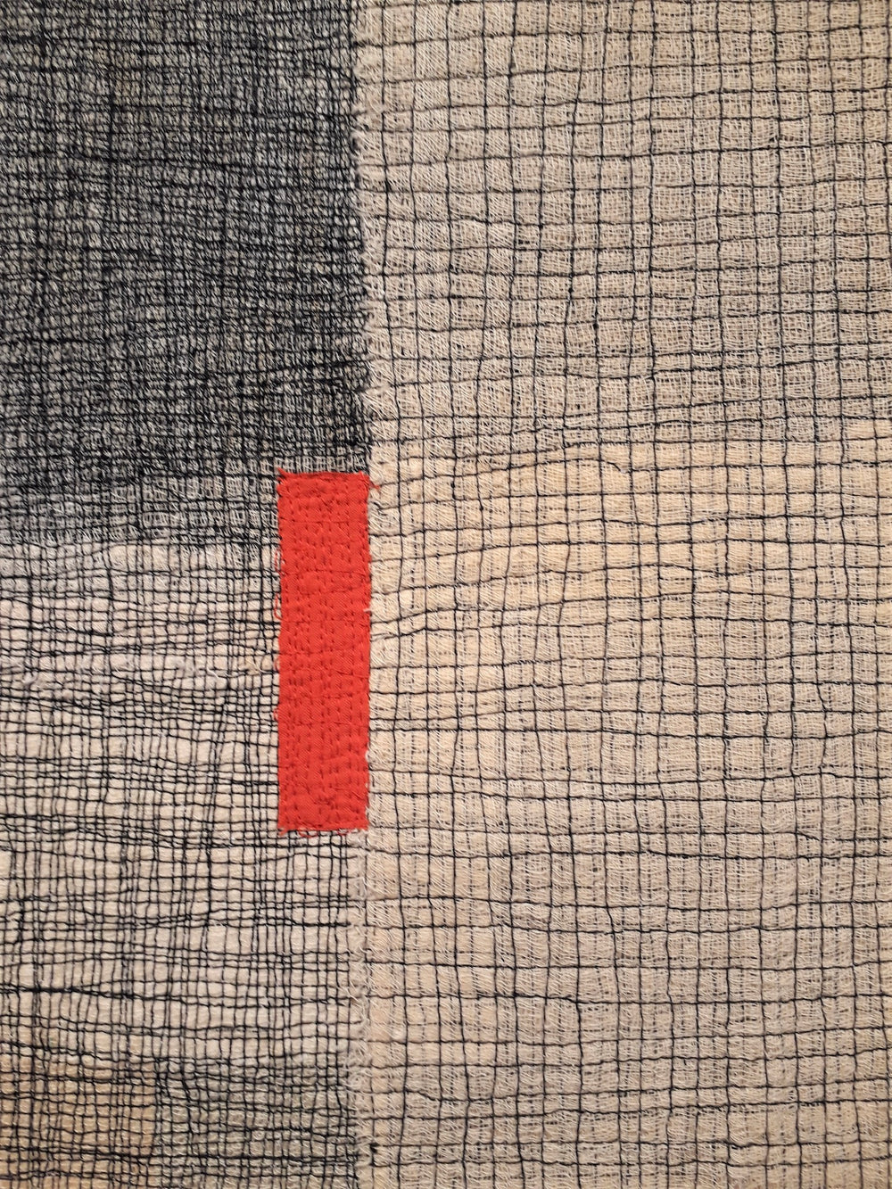 Patricia Kelly, Red Fragment, 2021, textile art, 64 x 90 cm (67.5 x 92 x 3.5 cm framed)