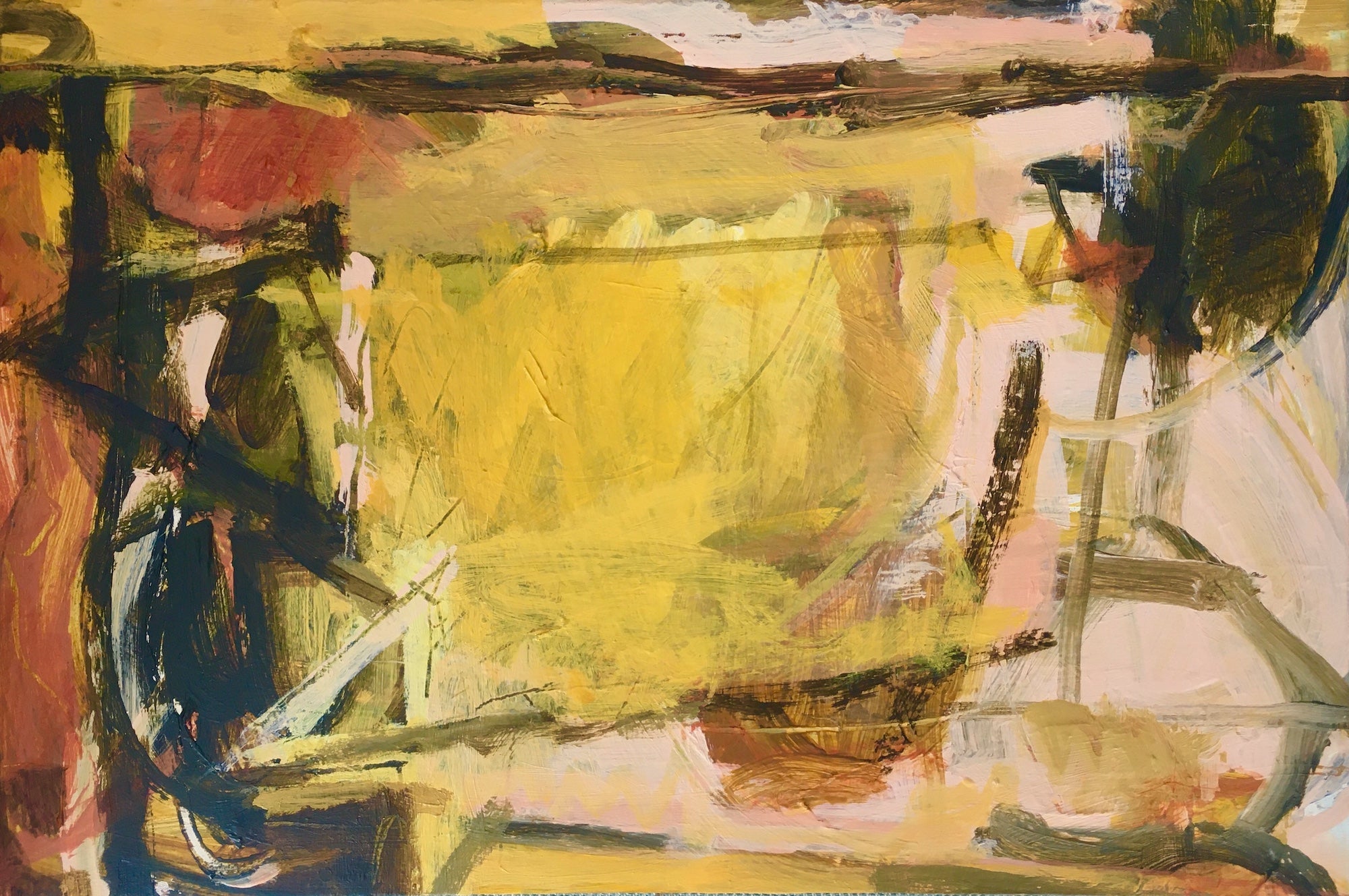 Janet Keith, Yellow Phase (Spring), painting, 38 x 26 cm (50 x 38 x 3 cm framed)