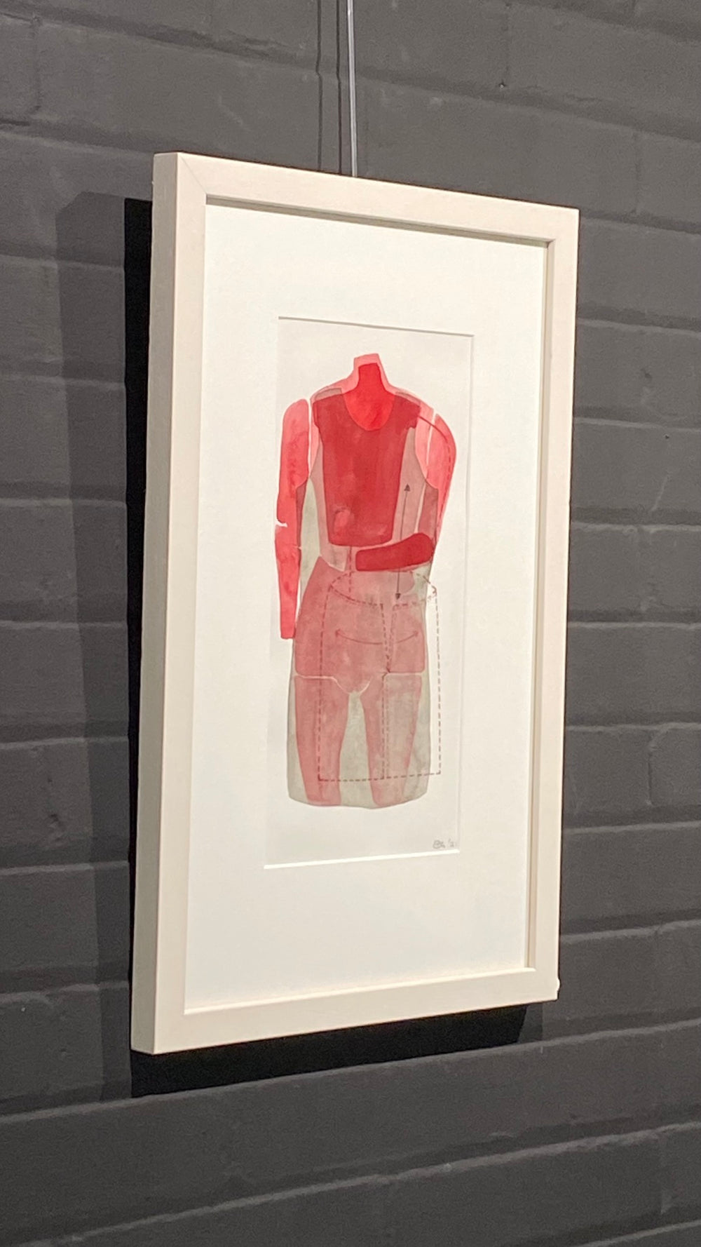 About this work - Part of the series of works on paper From the Cutting Mat, that combines references to sewing patterns and dressmaking processes, with the form of a fragmented body. This series explores ideas around resilience of mind and body in response to life experiences and echoes ideas of transformation, and adjustments and deep emotional resonance through the use of primordial colour.