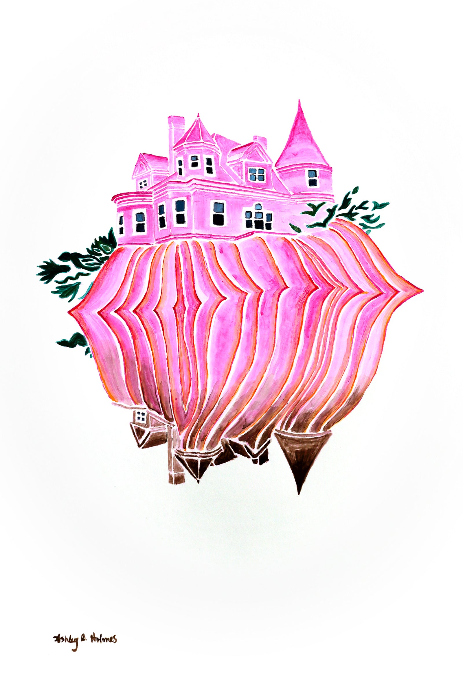 Ashley B. Holmes has extensively exhibited locally and internationally. Her works have been bought for private and public collections or commissioned for public spaces.  The artist creates paintings that explore states of mind and psychological landscapes. She often uses the iconography of house, a space that can contain all the emotional grey areas between a safe place and a secret war zone, a dual nature which can be subtly be referred to by mirrored images. Despite being inspired by historical architecture, these fascinating houses have a surreal and dreamy quality as they swim, fly or float in imaginary spaces.