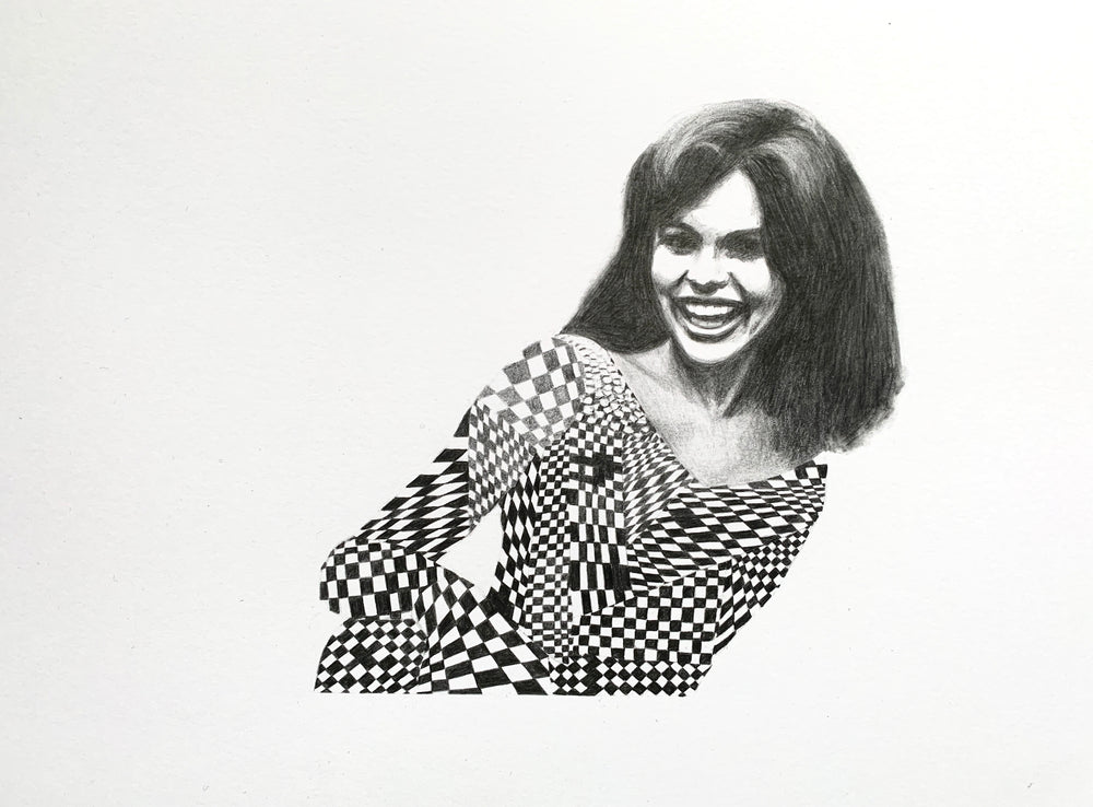 About this work: This drawing is part of a small series of works pertaining to the Profumo Affair, considered a major scandal in twentieth-century British politics. John Profumo, the Secretary of State for War in Harold Macmillian's conservative government, had an extramarital affair with the young model Christine Keeler. The drawing focuses on a woman from an image of society of Stephen Ward, one of the central figures in the affair, surrounded (or guarded) by women at his side and feet. The mythological sphinx, though beguiling, will destroy the unworthy who cross her path. Though the ages, especially in Masonic traditions, the sphinx has come to represent guardianship and the protection of secrets.