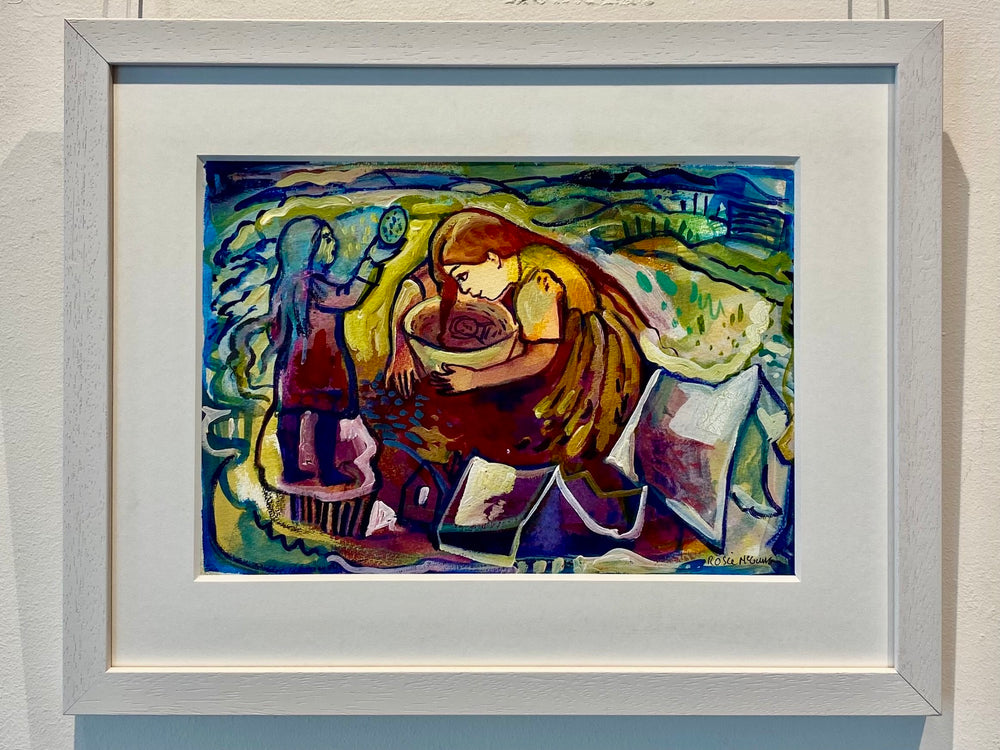 Rosie McGurran is a member of the Royal Ulster Academy and an award-winning painter. Her work draws upon stories and histories of Roundstone (in the West of Ireland) and Belfast, as well as autobiographical elements. Yet, her paintings are never completely true representations of events, people, places or memories, but the real world co-exists and blends with an imagined one